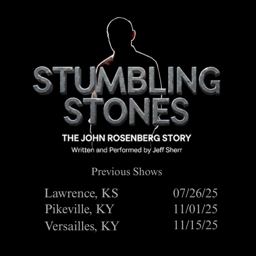 Stumbling Stones: The John Rosenberg Story is a solo play performed by Jeff Sherr that spans continents and generations, from fleeing Nazi Germany to standing with civil rights workers in Mississippi and coalfield families in Kentucky. Through decades of courtroom battles and community organizing, the play becomes a testament to memory, resilience, and the power of collective action—with an intimate thread of love and partnership at its heart. Ultimately, it’s a story of hope, reminding us that the work of justice is never finished and inspiring us to repair the world we live in today, stone by stone. See synopsis…